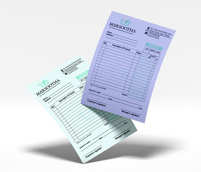 NCR (No Carbon Required) Booklets are an essential corporate tool that makes day to day business documentation like invoices, receipts, delivery notes, purchase orders, job cards, etc. seamless, clean, and professional. Multiple copies can be printed simultaneously, clear and smudge free, making manual record keeping much faster & error free. Restaurants, logistics, service companies, retail stores, workshops, corporates any industry can use NCR books as a reliable and organized solution.