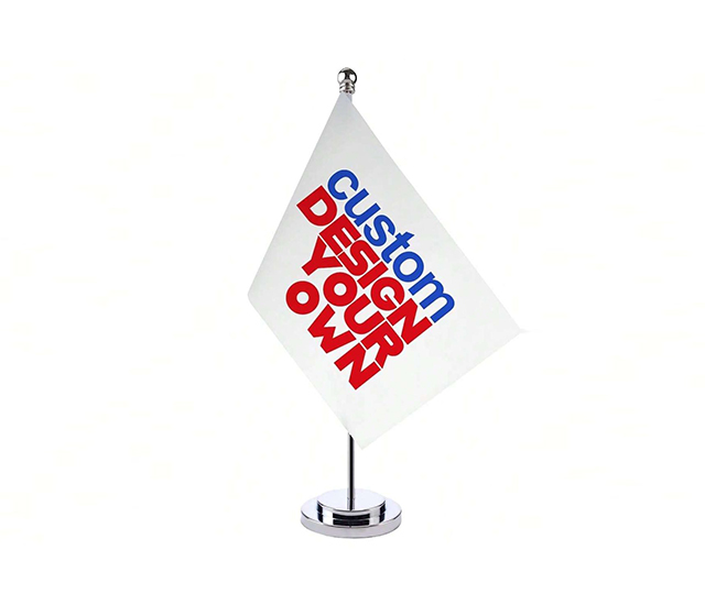 We offer high-quality customizable table flags with single-sided & double-sided printing, satin fabric, polyester flags, metal/wooden bases, etc. Printed with company logo, brand colors, and national flags in crystal-clear detailing and polished finishing. Durable fabric, premium stands, and elegant craftsmanship our table flags are the perfect choice to make your table setup refined, attractive, and brand-focused.