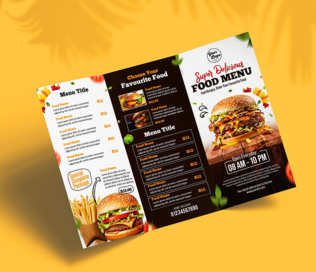 Menus are the most important branding element that determines the first impression of a restaurant, café, lounge, bakery, or hotel. Elegant layout, clear typography, and visually appealing dish presentation elevate a premium menu dining experience. Well-designed menus guide customers to quick decision-making and make the overall brand perception more luxurious & professional.